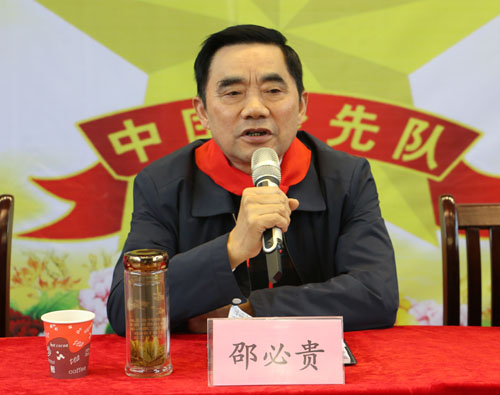 邵必贵在仪式上发表讲话,他希望少先队员们树立远大理想,培养高尚情操,锻炼强健体魄,塑造坚强意志,从小爱学习、爱劳动、爱祖国,德智体美全面发展,长大后成为对祖国建设有用的人才。
