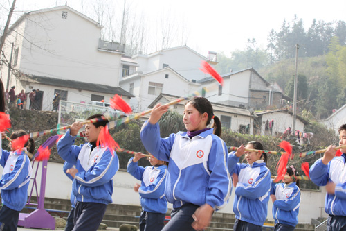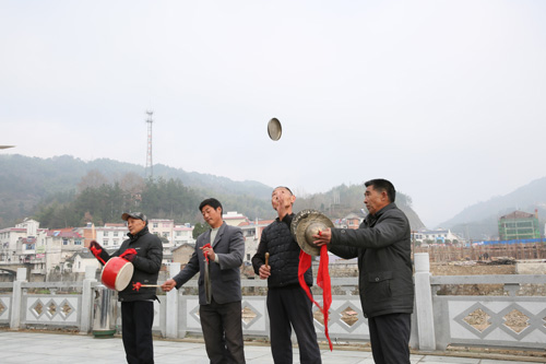 11月30日,漫水河镇农民在表演传统文艺节目。山歌飞扬,花鼓声声,连响舞动,锣鼓喧天。深山区农民以独特的艺术形式放飞心中的喜悦,憧憬美好的未来。