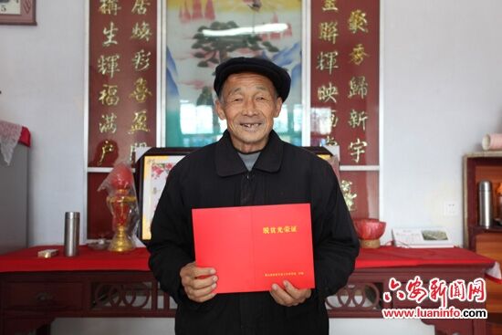 12月19日上午,安徽省霍山县但家庙镇观音岩村的贫困户广存祥老人拿到了全县第一张脱贫光荣证。手握脱贫光荣证,老汉广存祥热泪盈眶,不停的说:“感谢政府,感谢党的好政策,我终于脱贫了!很高兴!很高兴!”
