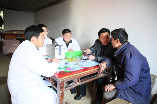 12月19日,霍山县卫生与计划生育委员会负责同志一行,在漫水河镇歇马台村卫生室开展项目扶贫工作现场办公。