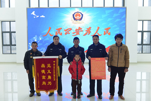 2016年12月27日上午8时,县公安局接待大厅,家住霍山县经济开发区城东社区王祥玉老人带着儿子和孙子,将一封大红黄字的感谢信和一面印有“见义勇为、品德高尚”的锦旗送到了前来接待他的公安局副局长但修文和东西溪派出所所长邵俊手中,孩子的爷爷激动地说: “我的孙子救活了,感谢县公安局培养了一位好民警,我的孙子要不是被你们公安局的这位好民警及时送到医院抢救,听医生说,迟10分钟就没命了”!真心的谢谢你们………