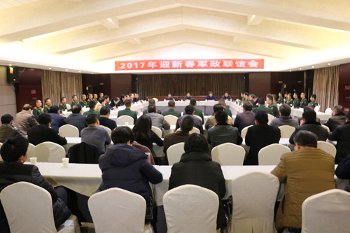 1月22日,霍山县举行2017年迎新春军政联谊会,军地双方相聚在一起,共商军地发展大计,共叙军民鱼水情谊。县领导梁国金、项跃文、孙瑞荣、李玉武、尹如江、朱卫东、王光军、潘传才、金正开、郝晓武、朱静出席联谊会,驻霍某部队、消防大队、武警中队、佛子岭水库管理处、六安市公安局交警支队高速公路三大队以及县双拥工委成员单位负责同志参加联谊会,会议由县委副书记、县长项跃文主持。