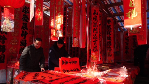 春节来临,为了营造安全、祥和、文明、有序的节日环境,县城管局于1月5日至1月27日期间,在县文庙广场东西两侧设置春联字画临时摊点40余户。图为1月23日,群众正在挑选春联。(郑新钰)