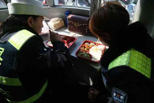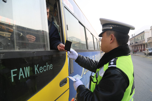 1月25日,农历腊月二十八,大量人员返乡,各种人潮重叠,客流、车流高量流动,安徽省霍山县迎来今年春运以来的交通流量最高峰。县公安局交警大队全警动员、团结一心,全天候奋战在路面一线,全力以赴迎战春运高峰。(刘容海 耿波)
