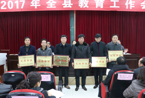 会上,县教育局负责同志作工作报告,总结回顾了2016年全县教育工作成绩,研究部署了2017年教育改革发展任务。会议还对教育教学管理、教育信息化应用、校园及学生安全管理和义务教育经费保障机制改革机制的先进单位进行了表彰。县教育局与学校代表现场签订了规范办学行为和安全工作责任状。