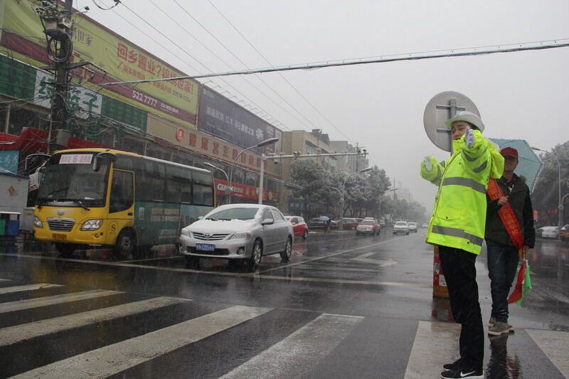 2月8日凌晨,我县受冷空气影响,出现雨夹雪、降雪天气,雪情发生后,交管大队高度重视,立即启动应急预案,一线交警全员在岗上路疏导交通,尽力恢复山区道路畅通。