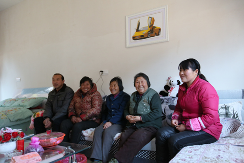 在村民马海松家,女主人沏了上好的茶叶,端上了瓜子点心热情招待我们,陪我们一块前往的几位村民一一和主人热情打着招呼,大家围坐在一起看起了电视,拉起了家常,畅谈家乡发生的巨大变化。大家脸上洋溢着幸福的笑容。