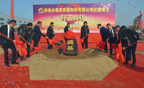 2月15日,回音必集团安徽制药有限公司举行迁建项目开工典礼。县人大常委会主任李玉武宣布项目开工。县政协主席尹如江,县委副书记董永来,副县长、县经济开发区管委会主任李志刚,县政协副主席廖华,回音必集团总裁王大冲出席开工典礼。