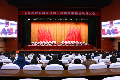 为整治和规范全县石材石料开采加工秩序,2月26号,我县召开石材石料开采加工秩序集中整治工作动员会,县领导梁国金、项跃文、李玉武、尹如江、董永来、曹君、朱卫东、王光军、陈明龙、储诒权、潘传才、李志刚、郝晓武、朱静、廖华出席会议。