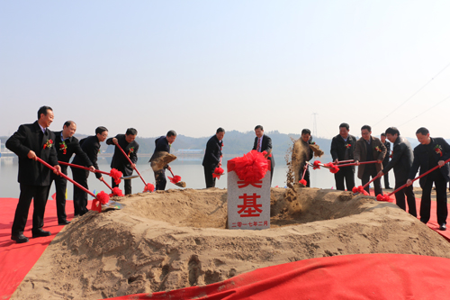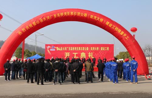 县委书记梁国金宣布大河厂至高桥湾至黑石渡公路(双湾大桥)建设工程项目正式开工。随后,县领导和嘉宾共同为项目开工培土奠基。