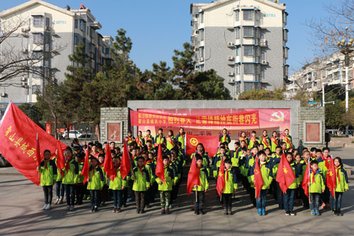 在文庙广场,城西小学五年级100余名同学齐唱《学习雷锋好榜样》,校长对同学们作了热情洋溢的鼓舞动员,学生代表发表了“学雷锋,进小区,争当环保小卫士”的即兴演讲。