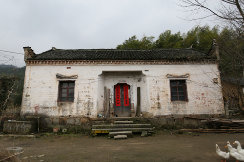 据罗会龙介绍,千笠寺距霍山县漫水河镇和大化坪镇分别为15公里和20公里。这里原为千笠寺村,1992年3月撤区并乡时,由原五星公社千笠寺村并入现在的大化坪镇俞家畈村。过去千笠寺共有300多户1000多人聚居在这里,2006年这里成了白莲崖水库淹没区,这儿的村民有的成了移民,搬到黑石渡移民新村去了,有的到县城,省城买房随子女生活,有的就近选址建房或者搬到当地的新农村去了。剩下的仅有二户人家因靠水库淹没区较远至今仍然居住在这里。交谈中,罗会龙的双眼渐渐润湿,挂满了泪花。