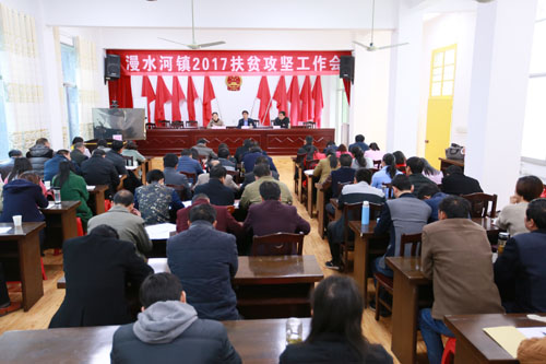 3月11日,漫水河镇召开2017年扶贫攻坚专题会议,全体镇村干部、扶贫专干以及镇直单位负责人参加了此次会议。镇党委副书记、镇长张扬作大会工作强调与要求。会议号召全镇党员干部要站在讲政治、识大局、讲担当、比贡献的高度,全身心投入到精准扶贫攻坚战中去,共同续写全镇扶贫攻坚新的篇章。