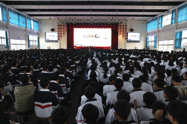 报告前,刘彬校长致欢迎词。他首先代表霍山文峰学校近万名师生,向许主席的到来表示欢迎和感谢。他指出,文峰学校虽然是一所山区学校,却十分重视学生阅读和文学素养的培养,从这里走出了中国诗词大会第一季总冠军殷怡航。学校建有藏书20万册、使用面积2000平米的春华阁,每天开设有阅读课;成立了校诗联学会,办有校报、诗刊,经常开设文学讲坛和诗词品鉴班,着力将广大文峰学子都培养成灵魂有香气的人;各类读书和征文活动的频频开展,以及每年一届的校园读书节和诗歌节,让全校师生插上轻盈的翅膀,尽情翱翔于浩瀚的文学星空。他希望同学们认真聆听讲座,感悟、启迪人生。