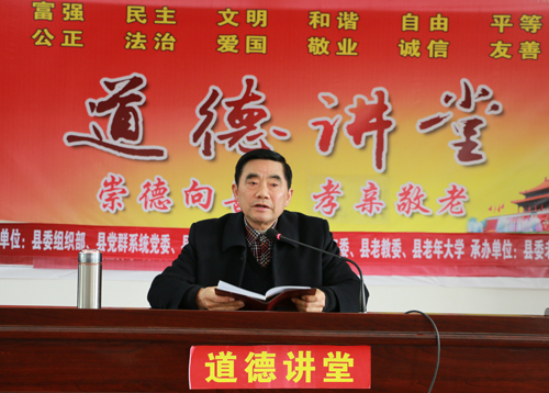3月31日,县委组织部、县党群系统党委、县文明办、县老干局联合举办以“传承红色基因,弘扬优良家风”为主题的道德讲堂活动。县委常委、组织部长王光军出席活动并讲话。参加活动的还有县处级老领导王永超、杨开文、邵必贵、王先成、谭录林、周瑞祥等,以及来自县消防大队的部分官兵、县直相关单位的部分领导和同志和县老年大学学员代表。