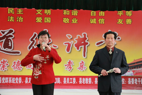 县老年大学学员代表为大家演唱了家风建设经典歌曲《中华好家风》。