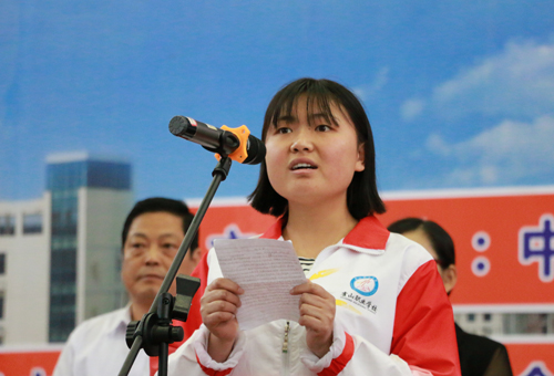 启动仪式上,县科普志愿者代表储倩倩同学在会上发言。