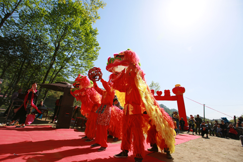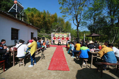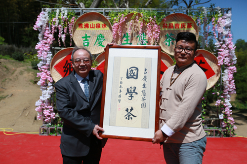 乡村四季美,春来一县香。4月23日,位于霍山县漫水河镇西南部的歇马台村一村落鼓乐喧天,山歌飞扬,双狮竟舞,热闹非常。当天上午九时许,霍山县吉庆生态茶园首届采茶文化节盛妆开启。原台湾师范大学国文系教授、著名国学大师朱荣智博士,著名太极拳大师张绍宏先生,知名茶叶专家陈嗣君老师,吉庆生态茶园总经理杨武先生以及歇马台村杨仁俊书记等出席今天的仪式。来自省城合肥的嘉宾和当地村民200余人参加了采茶节活动。