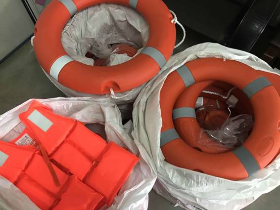 为全力保障人民群众生命安全,近日,高桥湾现代产业园管委会及时购置了一批救援设备,包括救生圈、救生衣、救生绳、救生杆等,就近放置在河道、桥梁周边,方便河道落水紧急救援,避免悲剧再次发生。(杨娟