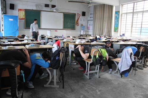 本次防灾减灾演练包括两项内容:一是应急疏散演练。在发出预警哨音后,各班学生抱头于课桌下避震,再一次哨音后,所有学生一起有序地向操场疏散,演练做到了安全、迅速、有序,活动达到了预期的效果。二是开展防震减灾科普报告会,让学生了解地震的成因,掌握地震发生时躲避、逃生的正确方法,以及发生火灾、海啸、洪水、泥石泥等自然灾害的自救方法,进一步加强了学生对有关防灾知识的了解,提高了学生的自我救护能力和避险减灾意识。