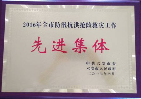 近日,漫水河镇荣获六安市委、市政府颁发的“2016年全市防汛抗洪抢险救灾工作先进集体”。