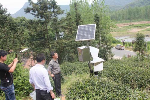 为拓展农作物害虫监测途径,探测农作物害虫监测预警技术标准化、自动化和智能化新技术,进一步提高农作物害虫监测技术水平,响应县政府“智慧农业”战略布置,县植保站在省总站的精心安排下,于5月14日在诸佛庵镇狮子山村茶园安装了2台茶尺蠖性诱智能化监测系统,并调试完成。