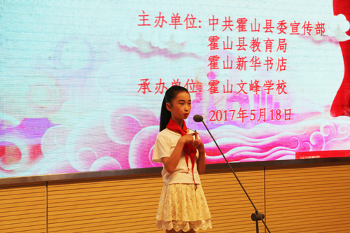 5月18日,霍山县第二十四届以“百年追梦 全面小康”为主题的青少年爱国主义读书教育活动小学生讲故事、中学生演讲比赛隆重举行,本次活动由县委宣传部、县教育局、新华书店主办,县文峰学校承办,县委常委、宣传部长曹君出席活动并发表致词。