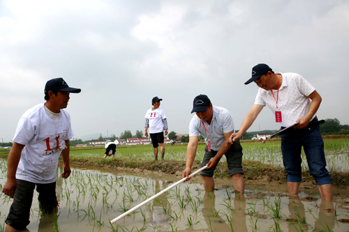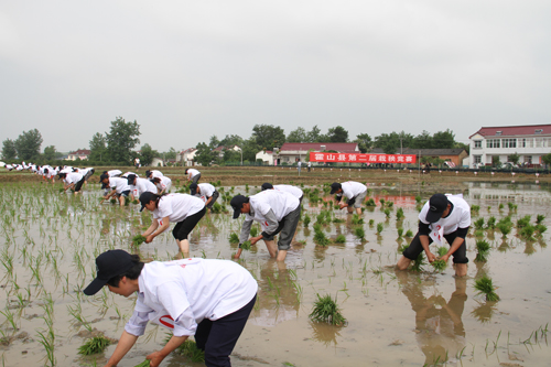 5月24日,霍山县16个乡镇及经济开发区40个代表队、80名农民栽秧好手齐聚与儿街镇省级现代农业示范区,参加霍山县农委主办、县旅游局协办、与儿街镇承办的“体验农耕,热爱生活”第二届栽秧比赛。县人大常委会副主任李燕出席活动并宣布比赛开始。