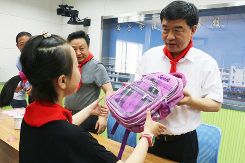 校园里充满着欢声笑语,快乐洋溢在孩子们的脸上。教室里,几名少先队员为孙云飞一行系上鲜艳的红领巾,孙云飞微笑着与孩子们亲切交谈,送上儿童节的特别祝福和书包等文具用品,为学校送上慰问金,并详细询问他们学习生活情况。孙云飞勉励孩子们要从小学习做人,学习和传承中华民族传统美德,学习和弘扬社会主义新风尚,热爱生活,懂得感恩,与人为善,明礼诚信,努力做祖国和人民需要的好孩子,做祖国和人民事业发展的接班人。