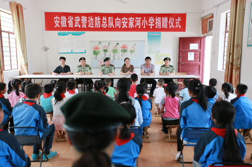 初夏的古霍大地阳光灿烂,生机勃发。6月1日,安徽省公安边防总队参谋长赵岩松率队,来到位于大别山腹地霍山县漫水河镇安家河小学,开展六一走访慰问活动,共为该校捐赠了值价3万余元的学习用品,并为7位贫困学生每人送去了500元教育慰问金。赵岩松现场表示,今后总队将一如既往的关心支持老区办学,情系老区贫困儿童,让军民鱼水之情代代相传。