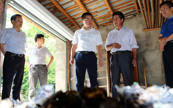 贫困户储著权为了摆脱贫困的帽子,积极培育食用菌。项跃文一行来到他家的食用菌培育基地,详细询问产业发展情况。当听说他还注册了商标“林中音”,发展木耳和野山茶等特色农业,带动附近三户贫困户共同增收时,项跃文对他的做法表示高度赞赏,并要求随行的干部多多支持像储著权这样的勤劳贫困户,以点带面,促进全镇扶贫工作开展。项跃文还来到贫困户刘杨根家中,听他的发展想法,为他的脱贫指路。没有集体经济产业一直是双龙村贫困的主要原因,项跃文一行来到双龙村茶厂和双王路的施工现场,与镇村“两委”班子一起就双龙村脱贫聊出路、话发展。