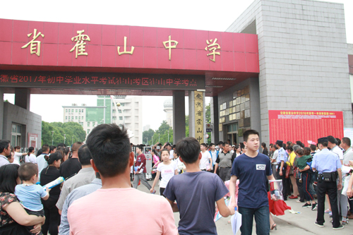 6月14日上午8:30,我县2017年初中学业水平考试拉开帷幕。今年我县中考报名人数为2641人,共设两个考点共91个考场,其中霍山中学考点设48个考场,霍山二中考点设43个考场。