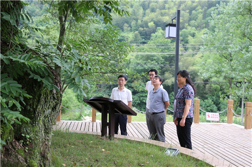 朱思雄一行沿大别山旅游扶贫快速通道,实地考察调研了磨子潭水库、单龙寺镇古树新村等茶谷节点,认真听取有关情况介绍,详细了解霍山的人文、历史,重点关注霍山水源地保护、美丽乡村建设、旅游发展等方面情况。