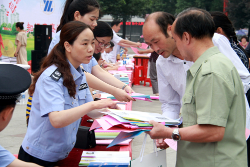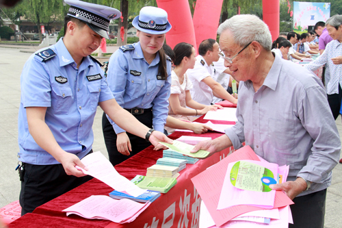 活动现场,县法院、检察院、公安局、司法局、安监局、市场监督局、交运局等26家单位以搭设咨询台、摆放展板、发放宣传资料的形式,向来往市民宣传相关法律知识,耐心解答群众关心的热点难点问题。