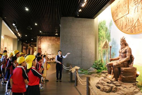 在安徽名人馆,同学们从远古、秦汉、唐宋元明清到民国、新中国分区观展,了解了有巢氏、姜子牙、曹操、包拯、朱元璋、李鸿章、陈独秀等800多位安徽名人以及徽风皖韵特色文化风采。这些在中国甚至世界历史上赫赫有名的人物在安徽名人馆内集中“亮相”,让同学们身临其境地学习了家乡的历史,增强了热爱家乡的自豪感,也增添了建设好家乡的使命感。