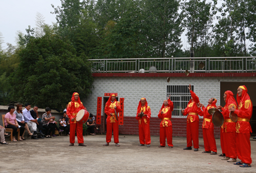 6月21日夏至节,村民在农家院落表演传统文娱节目。