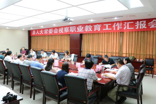 在下午的座谈会上,县教育局负责人汇报了全县职业教育工作情况;县人社局、县农委、县扶贫移民局及县残联等机关单位负责人关于职业培训工作情况作了汇报;视察人员分别就职业教育专业设置、师资利用及教育资源整合等方面提出了意见和建议。