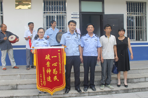 7月2日上午,县交管大队漫水河中队驻地院内鞭炮齐鸣,一群人敲锣打鼓走进院来,一对中年夫妇手捧锦旗走在最前面,场面好生感人。