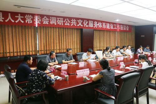 座谈会上,县文广新局负责人汇报了关于公共文化服务体系建设工作情况,调研组成员对全县公共服务体系建设提出意见和建议。