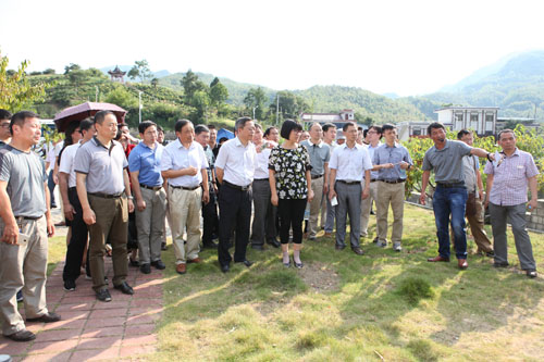 与会人员来到落儿岭镇余家湾实地考察余家老屋和震中标志石