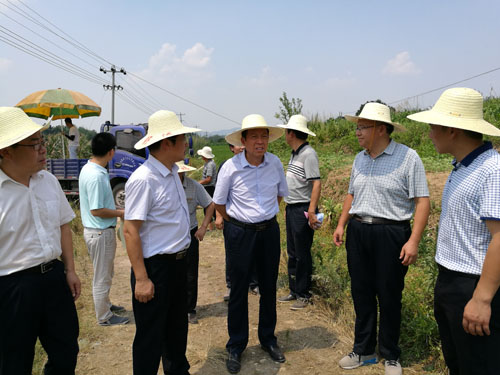7月25日,县委书记梁国金率县农委、水务等单位主要负责人,深入田间地头察看水稻秧苗生长情况,现场指导抗旱保苗工作。副县长纪昌国陪同。