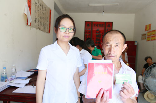 7月26日,村民汪双喜手持银行卡喜上眉梢。