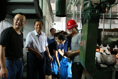 近日,县领导梁国金、尹如江、王光军、郝晓武一行,深入到迎驾集团溢彩玻璃公司车间开展“送清凉”慰问活动,并向一线职工发放清凉防暑用品。