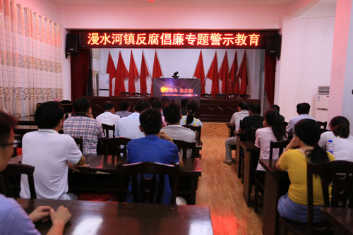 8月2日晚,霍山又一部反腐力作《忘却初心终成祸》电视片在漫水河镇政府礼堂播映。
