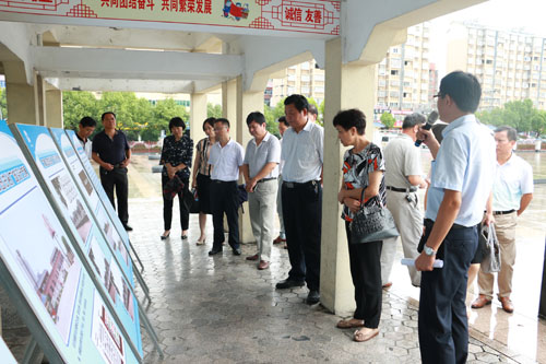 李玉武一行在文峰公园查看法治文化广场规划效果图