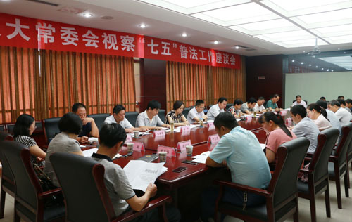 在随后召开的座谈会上,县司法局负责同志汇报了霍山“七五”普法工作情况。“七五”普法开局以来,霍山县紧紧围绕改革发展稳定大局,认真贯彻落实“七五”普法规划和人大决议,按照谁执法谁普法的工作原则,突出重点、创新载体,强化措施,着力提升全县人民群众的法治意识和法律素养,为维护全县社会稳定、促进经济和各项社会事业健康发展做出了积极贡献。
