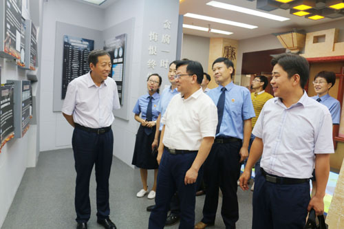 随后,汪德满一行来到县检察院,实地参观了县反腐倡廉警示教育基地,观看了反腐教育片,听取了相关讲解,并进行了座谈。在听取县检察院工作情况汇报后,汪德满指出,霍山县检察院始终坚持“精致检察、品质诉讼”的理念,紧紧围绕中心、服务大局,依法履行职责,打击严重刑事犯罪、诉讼监督等重点工作,积极推进检察改革,加强干部队伍建设和班子建设,努力打造优秀的基层人民检察院,为经济社会发展保驾护航做出了积极贡献。希望县检察院以全面深化司法体制改革为契机,继续加强自身建设切实发挥自身职能,加强法律监督,不断提升检察机关公信力,切实维护司法公正。