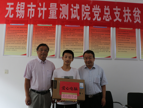 8月25日,无锡市质监局机关党委副书记缪亚岸、无锡市计量测试院党总支书记、副院长胡建栋一行在我县编办负责人的陪同下,亲赴诸佛庵镇桃源河村开展扶贫助学活动,为今年刚考上大学的贫困学子杨克建送去爱心电脑和爱心助学金,并看望了另外几位受助家庭。