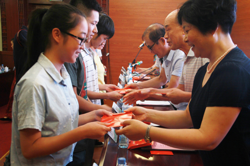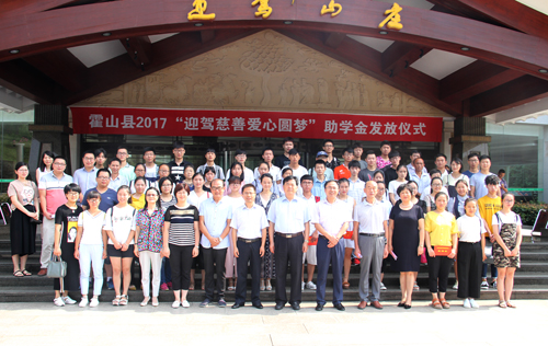8月25日,2017年“迎驾慈善爱心圆梦”助学金发放仪式在迎驾山庄举行,仪式为42名大一新生送去了助学金。县委常委、组织部长王光军,县委常委、副县长檀竹茂,迎驾集团总裁倪永培,团县委负责人,迎驾集团慈善基金会和各乡镇工作人员出席发放仪式。