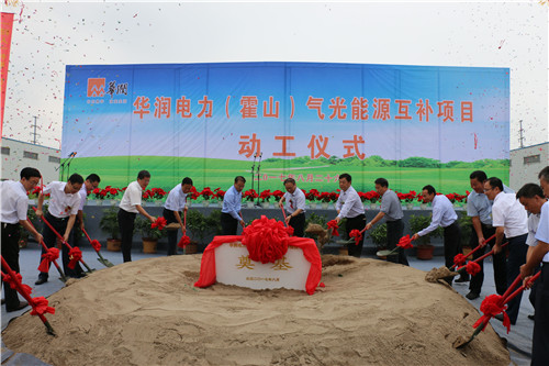 六安市委常委、副市长束学龙宣布项目动工。出席活动的各位嘉宾挥锹奠基培土,标志着华润电力气光能源互补项目正式落户霍山经济开发区。